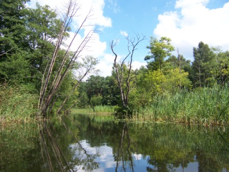 Gemächlich und unterstützt von leichtem Rückenwind schippern wir über den Plätlinsee Richtung Schwaanhavel. Diesmal sind wir die Pfadfinder, Dank Jübermann und Drittbefahrung wissen wir ziemlich genau, wo wir hinwollen und ein paar Leute hängen sich dran. Abgesehen davon ist der See eh nur im ausgetonnten Bereich zu befahren. Zu Beginn der Schwaanhavel kommen uns ausgerechnet an den engsten Stellen noch ein paar Boote entgegen, dann wird es aber ruhig und wir genießen die Natur pur. Nachdem wir dieses Jahr schon die Warnow und Rhin gepaddelt sind, erscheint es uns dieses Mal nicht ganz so urig wie sonst, aber trotzdem schön!