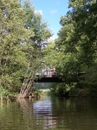Rechts rum in den erholsam ruhigen Kanal Richtung Fleether Mühle, wir haben den Motorbootverkehr hinter uns gelassen!