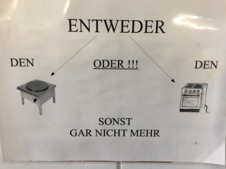Die Küche ist besser ausgestattet als Strom da ist, diskreter Hinweis an der Wand. ☺