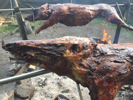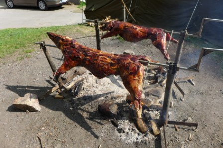 Samstag, 12.5. Der Platz draußen sieht aus wie Clubgeburtstag von gaaaanz Früher. Überall zerfetzte Plastiktüten, verstreuter Müll. Wir hatten Besuch von den wilden Tieren (Wildschweine/Waschbären/Katzen o.ä.) die nach essbarem suchten und dabei jeden unserer Müllsäcke völlig zerstörten. Jörni und Rammel sammeln in kurzer Zeit alles wieder zusammen. Das brauchen wir kein zweites Mal mehr, die Müllsacke müssen nachts in den Vorraum vom Haus.
