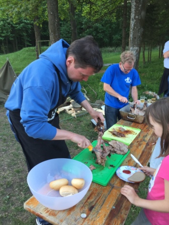 Schon halbzehn sieht der Platz wie unbenutzt aus. Die Reste werden an Willige verteilt, Ente erklärt dem Verwalter die Abrechnung.