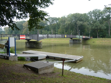 Das sind etwa 8 km, es dürfte also kein Problem sein, Hin- und Rückfahrt zu schaffen. Zeitlich müssen wir natürlich zwei Schleusungen pro Strecke einplanen. Ein breiter Steg direkt neben der Brücke macht den Einstieg zum Elsterflutbett einfach. 500 m weiter geht’s gerade aus weiter auf dem Pleißeflutbett, von rechts fließt die Elster ein. Die erste Schleuse Connewitz ist schon nach knapp 20 min erreicht und wird mit fast 20 Booten krach vollgefüllt.
