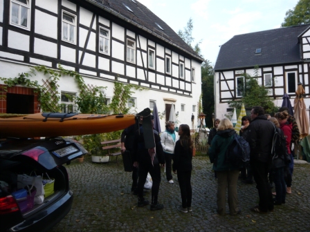 Die Anreise dauert mit dem Boot auf dem Dach von Berlin-Tegel aus deutlich länger als ich gedacht hatte. Los ging es 15:45 Uhr, durch den Berliner Freitagsstadtverkehr mit vielen kleinen Staus, die A9 bis Schkeuditzer Kreuz, weiter in Richtung Dresden bis zur Abfahrt Leisnig. Kurz nach halb Sieben bin ich endlich da. Kerstin macht die Zimmeraufteilung, einräumen und dann geht es zur Kneipe ein Dorf weiter, 25 min zu laufen. Essen schmeckt und der gut gelaunte Wirt ist zu vielen Scherzen aufgelegt.