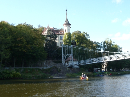 Eine Stunde später als gedacht kommen wir endlich in Grimma hinter der Hängebrücke an.