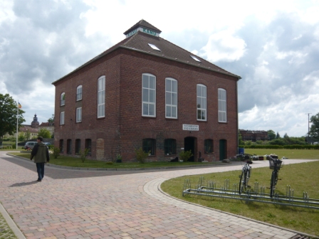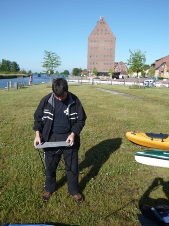 Gleich hinter der Drehbrücke und dem weit hin sichtbaren Speicher liegt der WWR Loitz (km 49). Er ist ziemlich neu und kahl (windanfällig!), die Wiese ist ok. Aus dem ehemaligen Bahnhof ist eine schöne Gaststätte geworden. Ein neues Gebäude mit Duschen (1€ Stücke) ist vorhanden. Der Hafenmeister händigt gegen 20€ Pfand zwei Schlüssel aus und wir können auch gleich die Brötchen für den nächsten Morgen bei ihm bestellen. Wir bauen auf, laufen in die Stadt zum Supermarkt.