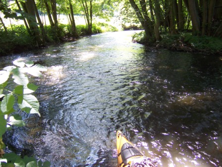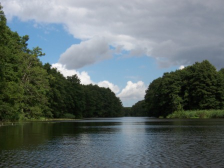 - Erstes Hindernis ist das Wehr Karnin. Aussetzen ist kein Problem, beim Einsetzen müssen wir aber durch schwarzen Modderpamps. Viele Steine und Holzhindernisse verzögern die Fahrt durch traumhaft schöne Landschaften.