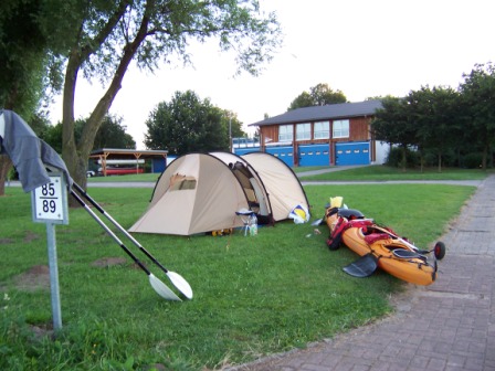 - Auf bis nach Minden km 202,5 , dort beim Kanuclub dürfen wir übernachten, Leute unheimlich nett, Zelt aufgebaut geduscht und lecker beim Argentinier gegessen